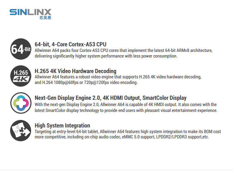 4GB EMMC、Supports H.265
