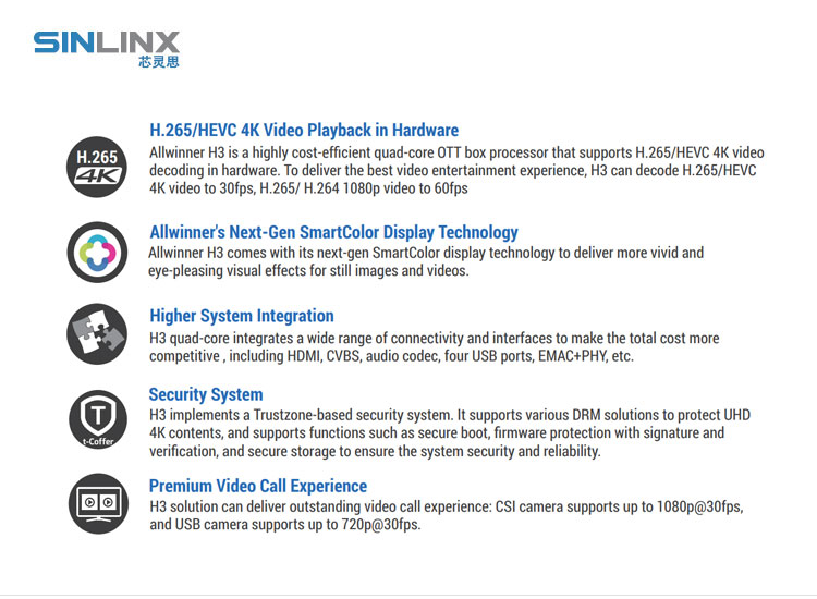 4GB EMMC、Supports H.265